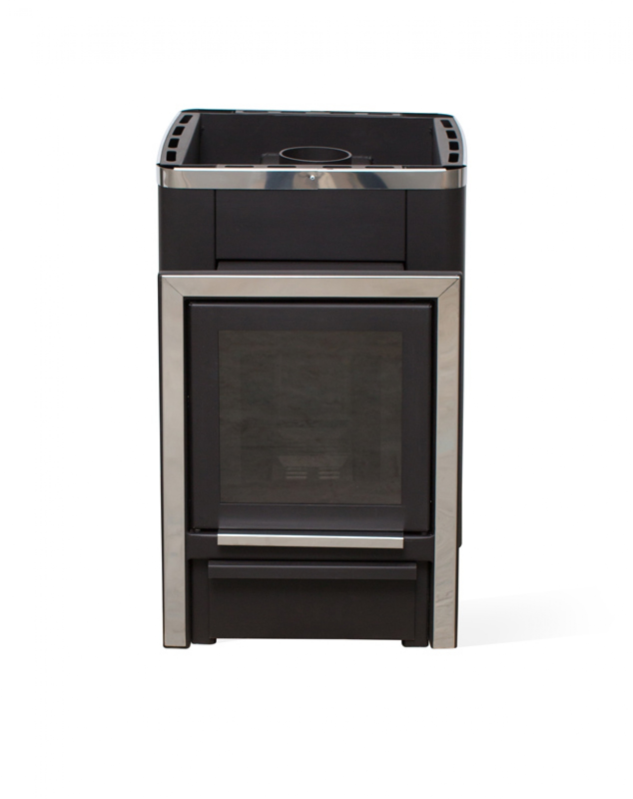 (ПБМ 20) - печь средней мощности с топкой из предбанника. Позволяет совместить два в одном -камин в комнате отдыха и банную печь в парной. Достаточна для обогрева предбанника или комнаты отдыха площадью 30-60 м2.