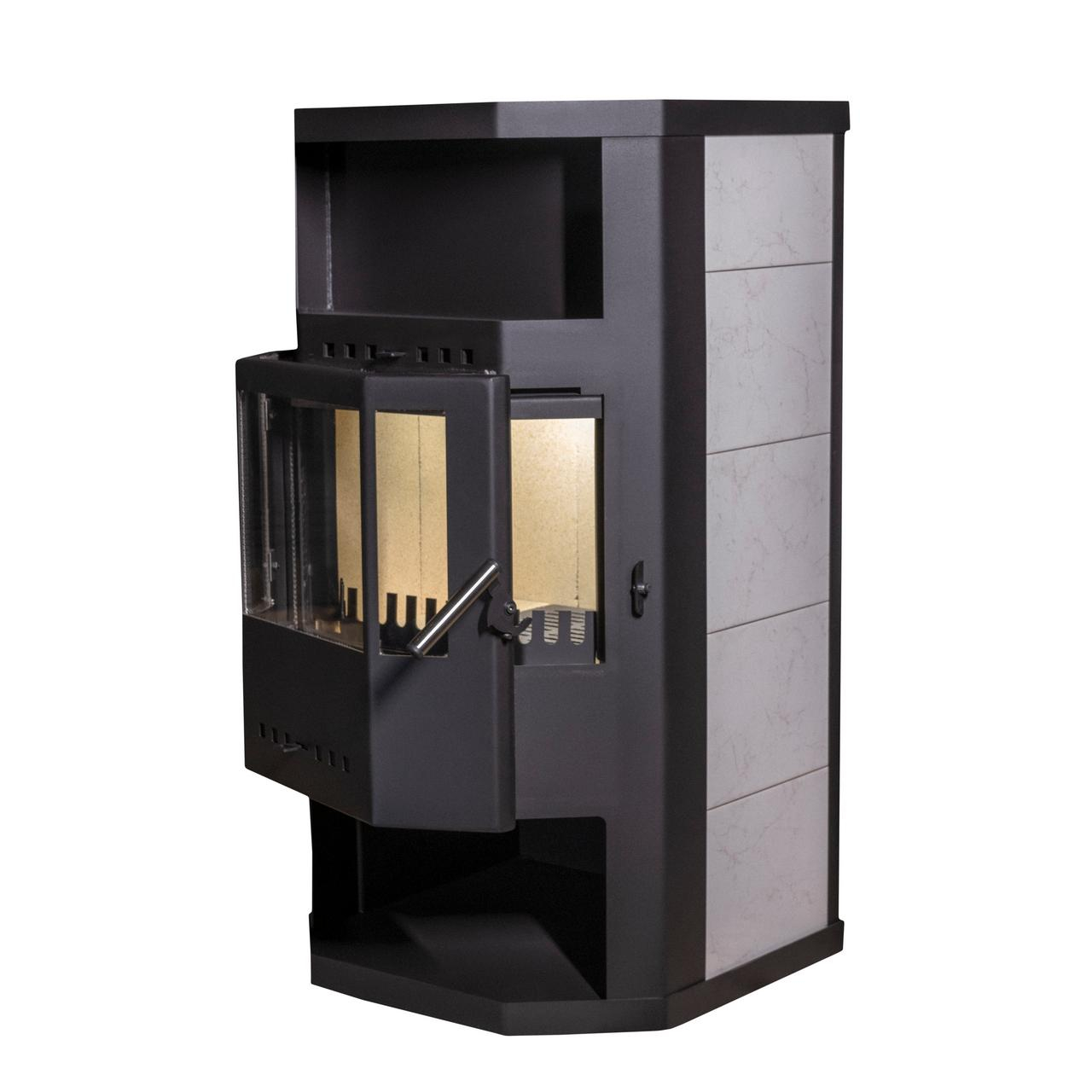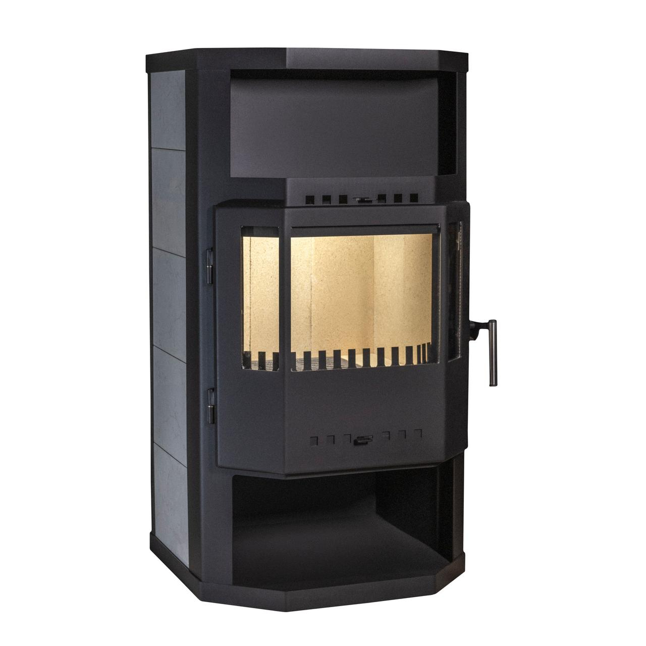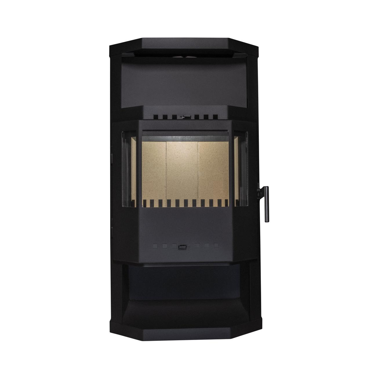 Классическая пристенная печь с панорамным обзором. Идеально подходит для обогрева помещения площадью 45-90 м2. Призматическая дверка из трех стекол высотой 330 мм. В отделке боковых поверхностей используется керамическая плитка. Размер поленьев 30-50 см. Подсоединение к дымоходу сверху или сзади.