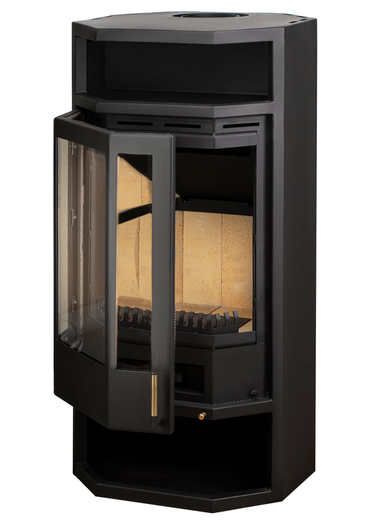 Пристенная высокая печь в современном европейском дизайне. Печь оборудована высокой остекленной призматической дверкой с 3-мя стеклами, выполненной в одной плоскости с корпусом печи. Дверка высотой 685 мм дает большой обзор пламени и закрывает зольный ящик и топочную камеру. Идеально подходит для установки в помещении, выполненном в современном стиле, площадью 50-100 м2. Размер поленьев до 60 см (верт.). Подсоединение к дымоходу сверху или сзади. Время горения 3-5 часов.