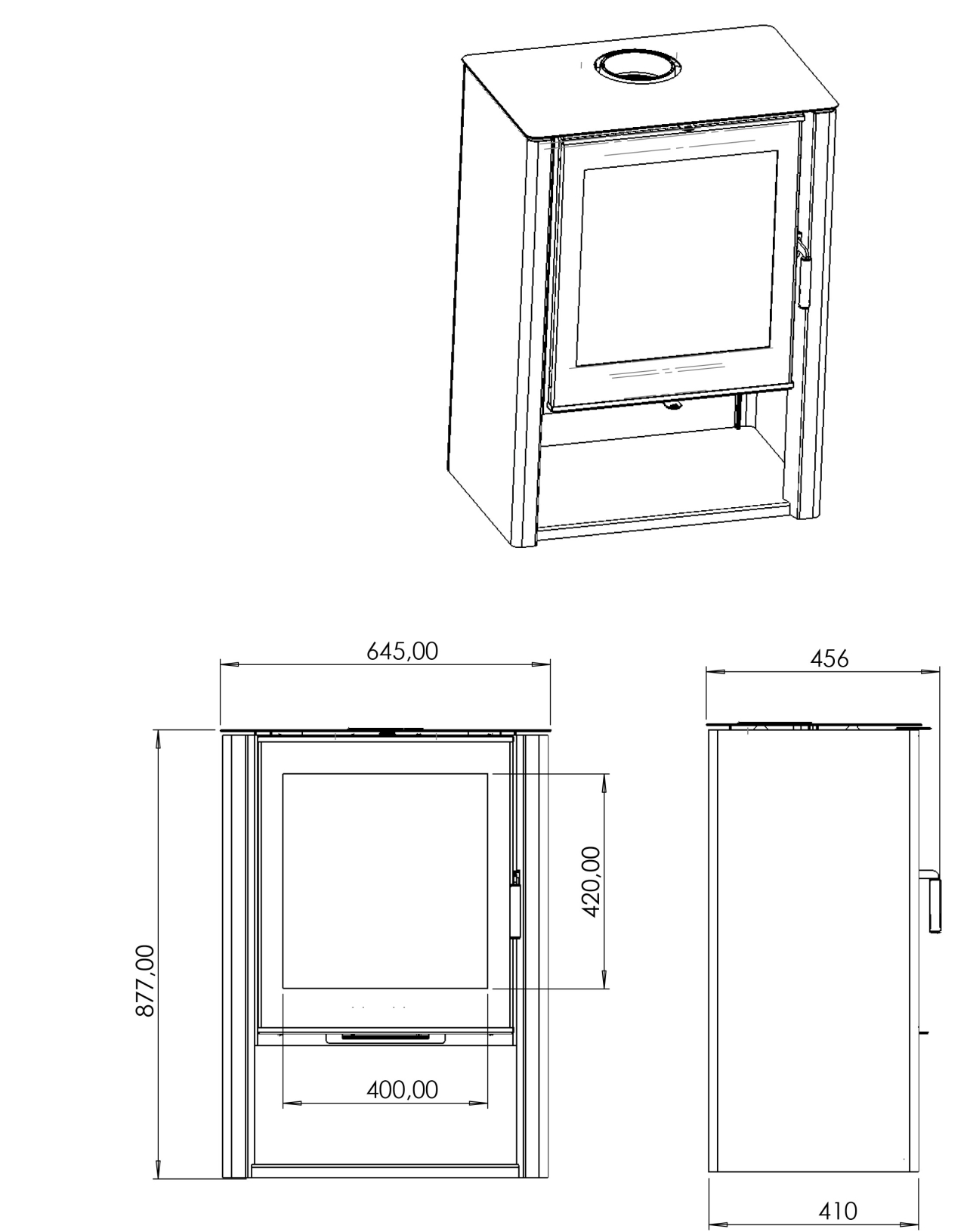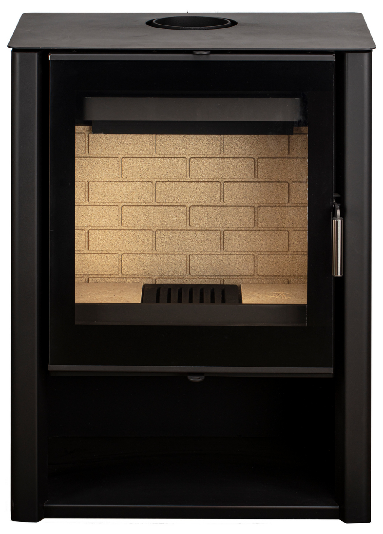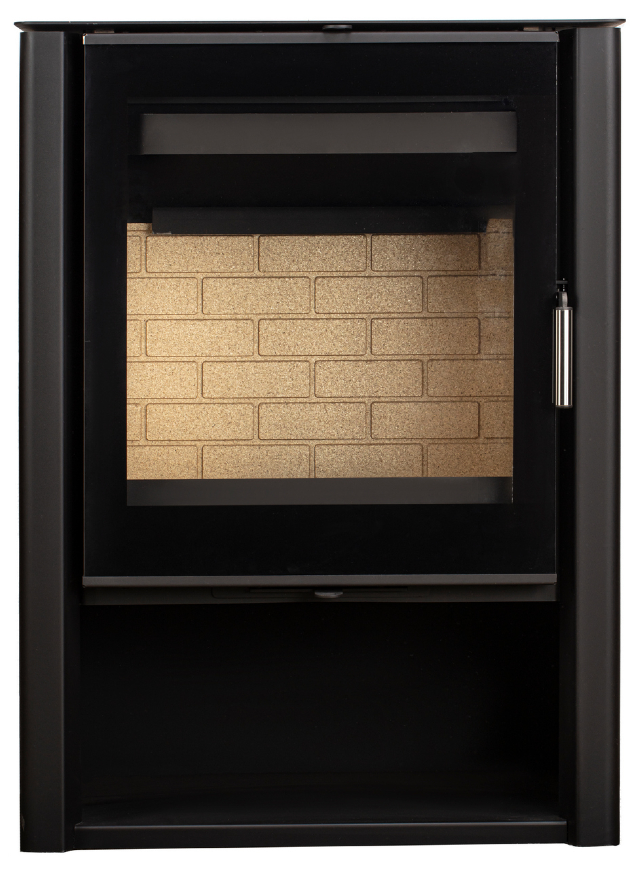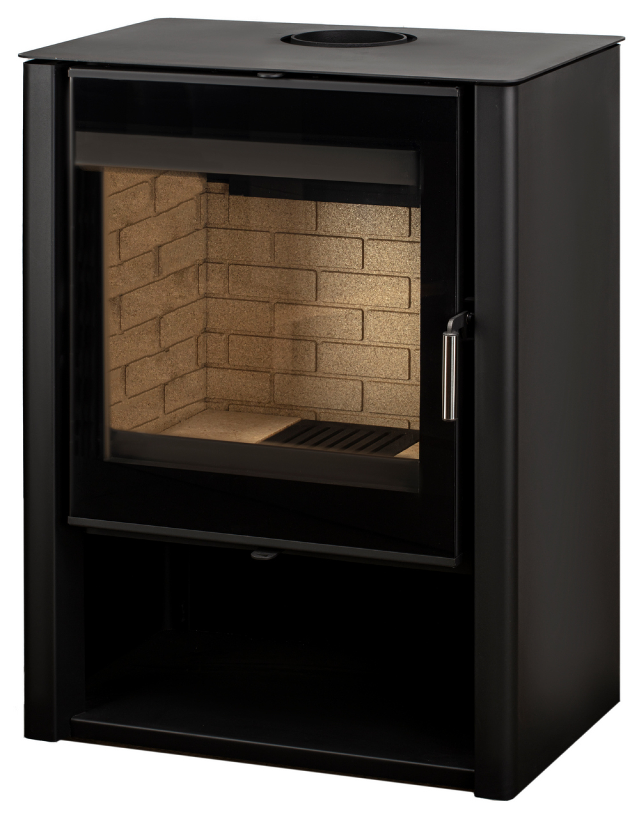 Пристенная печь с оригинальным и лаконичным дизайном. В дверке установлено термостойкое стекло, изготовленное в Японии на предприятии Neokeram с принтингом по периметру. Ниша под топкой может служить удобным дровником. Идеально подходит для обогрева помещения, выполненного в современной стилистике площадью 25-70 м2. Размер поленьев 30 – 40 см.