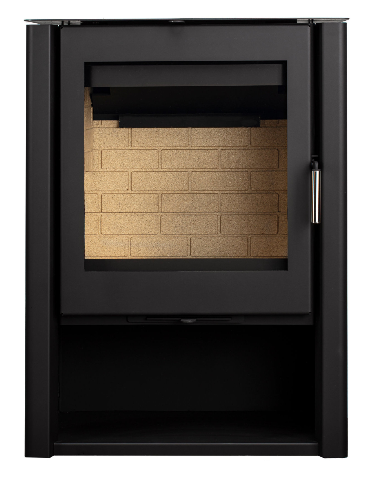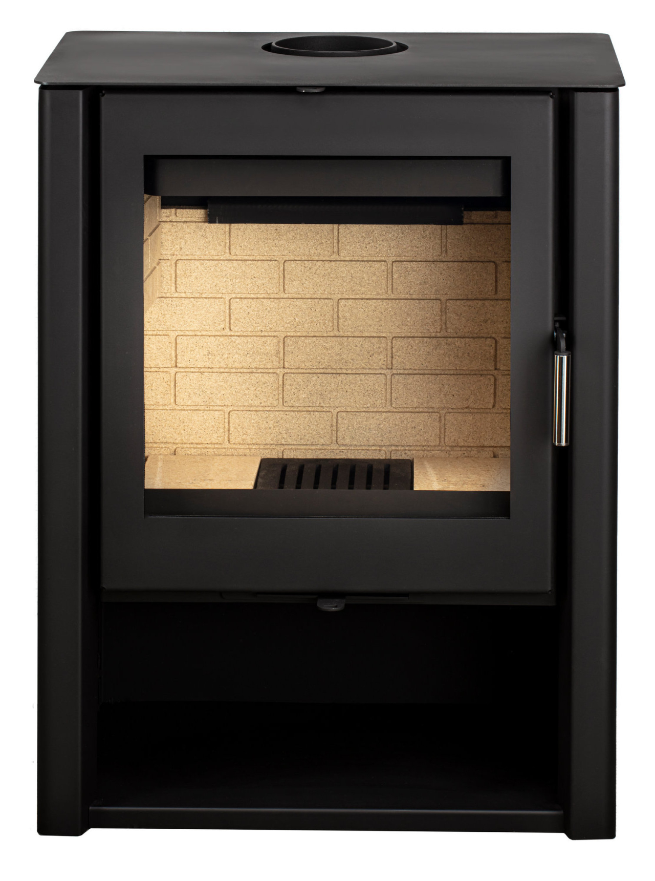 Пристенная печь с оригинальным и лаконичным дизайном. Широкое витрокерамическое стекло защищено от копоти системой воздушной самоочистки. Ниша под топкой может служить удобным дровником. Идеально подходит для обогрева помещения, выполненного в современной стилистике площадью 25-70 м2. Размер поленьев 30 – 40 см.