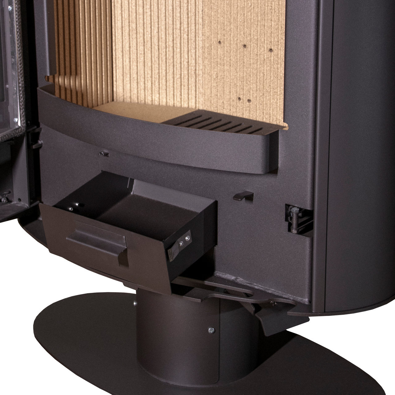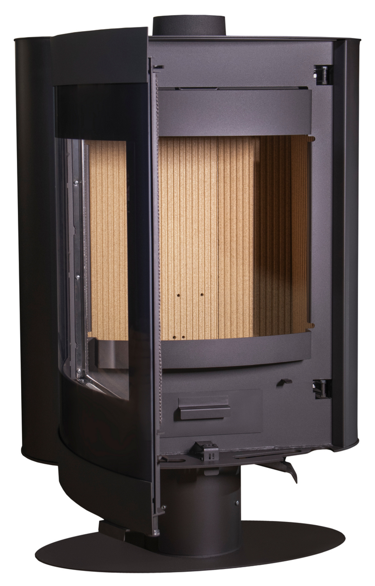 Кроме того печь оснащена поистине масштабным панорамным остеклением с габаритом 850 на 500 миллиметров. Теперь ни одна деталь процесса горения не скроется от изумленных глаз ваших гостей.